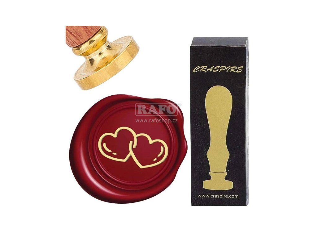 Pečetidlo s dřevěnou rukojetí DVĚ SRDCE, 2,5 cm