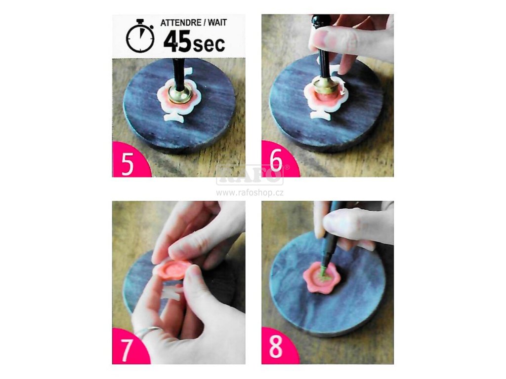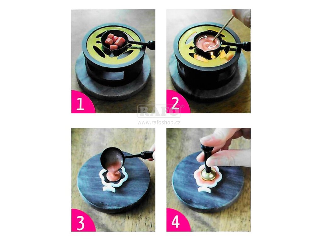 Formičky na tvorbu pečetí ve tvaru srdce, květiny, kolečka, oválu, čtverce a šestiúhelníku. Do vybrané formičky se nalije pečetní vosk, lze použít vosk granulovaný nebo tyčinkový. Do horkého vosku se otiskne kovové pečetidlo o průměru max. 2 cm. Po vychladnutí lze formičku odstranit a dokonalá pečeť je hotová. Bude skvělou ozdobou svatebního oznámení, pozvánek, chlopní obálek, dárků i kreativních projektů.