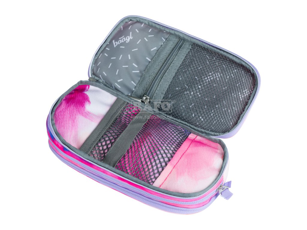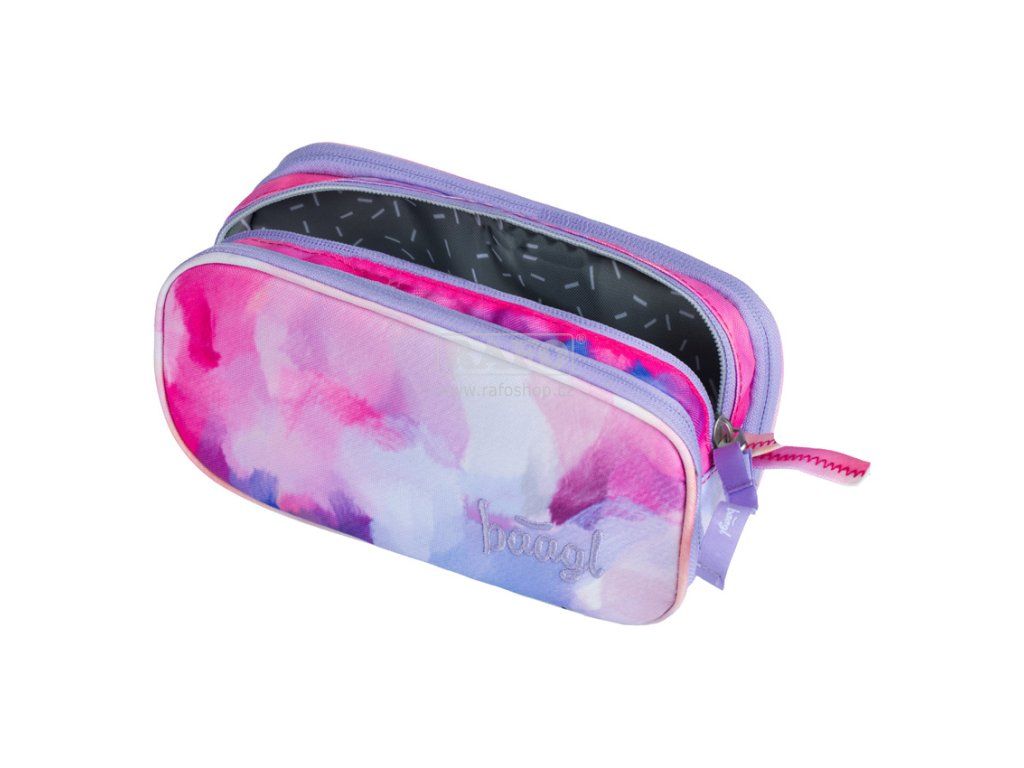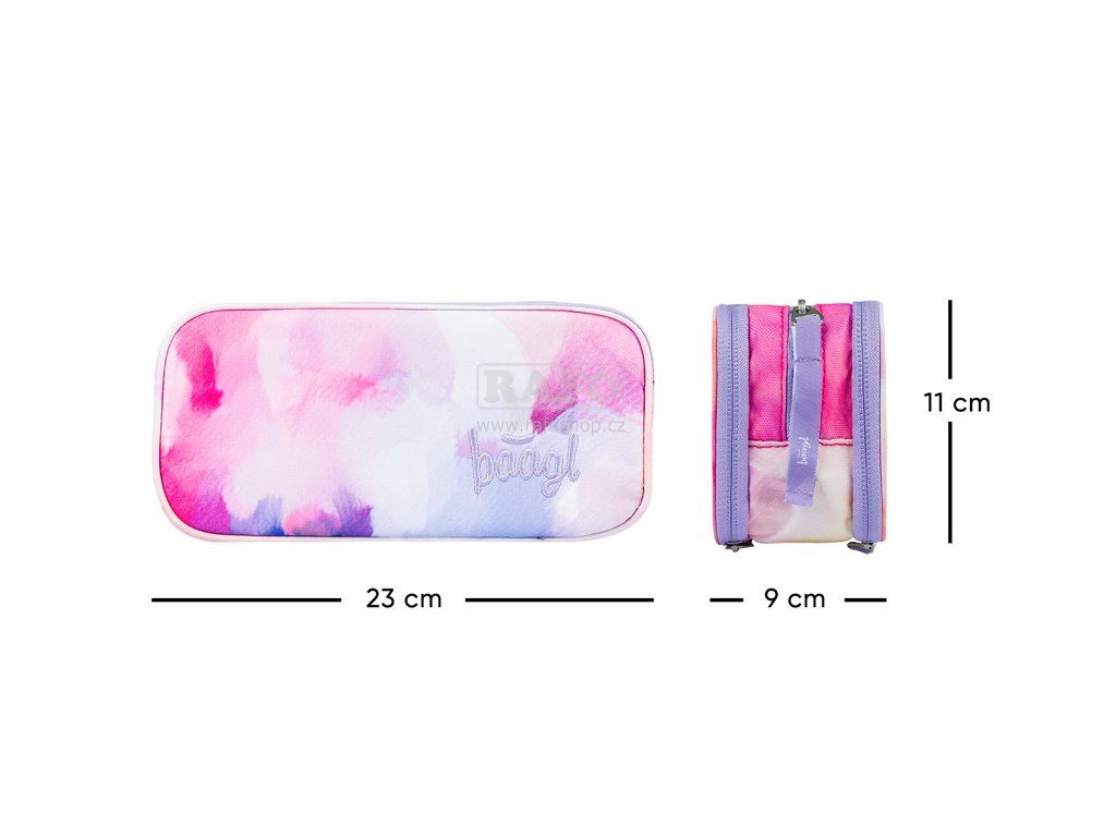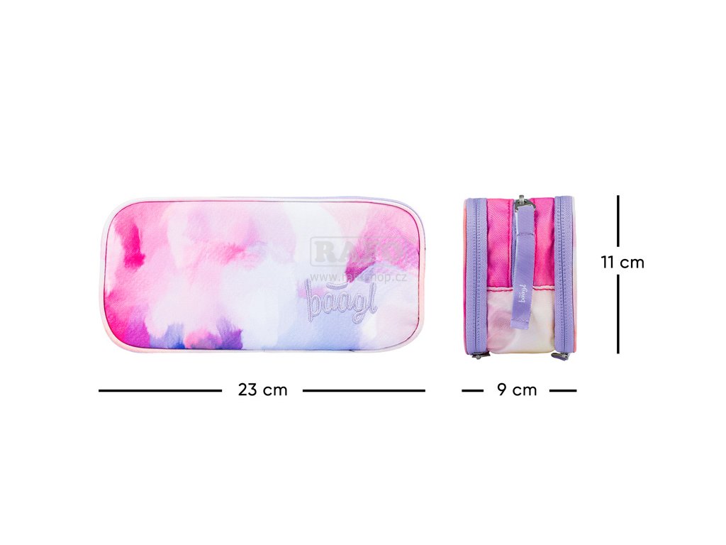 Růžovo-fialový abstraktní design tohoto praktického pouzdra potěší školačky i cestovatelky. Dobře poslouží na psací potřeby, šminky nebo cestovní doklady. • Kompaktní penál na zip s prostornou hlavní komorou a dvojitou výklopnou chlopní nabízí dostatek prostoru pro psací potřeby i drobnosti. • Součástí penálu je také vnitřní kapsa a okénko na rozvrh hodin. • Pevná táhla a značkové zipy YKK zaručují vysokou odolnost. • Vyrobený z pevného a recyklovaného materiálu. • Penál je dodáván bez náplně. • Rozměry: 23 x 12 x 5 cmDoplňkové parametry
