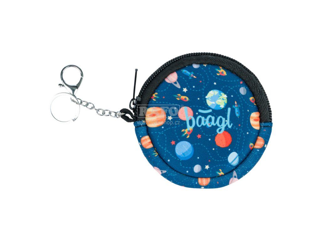 Kulatá peněženka s designem noční oblohy plné planet a raket, oblíbeného klučičího motivu. • Součástí je karabinka a kroužek na klíče. • Kulatý tvar. • Velikost: 8 cmDoplňkové parametry