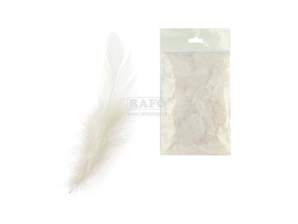 Peří pro dekorativní a kreativní účely. V balení 10 g, velikost cca 10 cm. Nejedná se o prachové peří.Doplňkové parametry