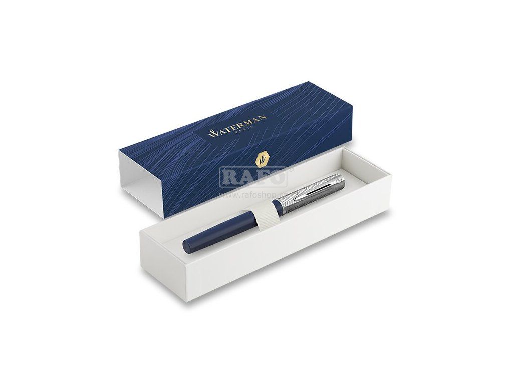 Plnicí pero Waterman Allure DeLuxe Blue má modře lakované mosazné tělo a víčko z broušené nerezové oceli zdobené rytinami vyvedenými pomocí laseru. V kombinaci s doplňky pokovenými palladiem. Hrot z ušlechtilé nerezové oceli. Skvělý tip na dárek! • nasazovací víčko • hrot z nerezové oceli • možnost použití jak inkoustových bombiček, tak i plnění z lahvičkového inkoustu • dodáváno s bombičkou, v dárkové krabičce • Allure je inspirovaný klasickými designovými tvary, je vysoce funkční a moderní psací nástroj. Vhodný pro každodenní používání nebo jako reprezentativní dárek. Slabý hrot (Fine) - Vhodný pro běžné psaní a poznámky. Mírný tlak vytváří jemnou linku. Velmi oblíbený, vhodný pro uživatele se standardním rukopisem.Doplňkové parametry