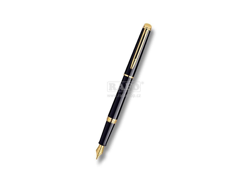 Černě lakované mosazné tělo a víčko. V kombinaci s doplňky pokovenými 23karátovým zlatem. Hrot z ušlechtilé nerezové oceli pokovený 23karátovým zlatem. Plnicí pero: nasazovací víčko hrot, prstenec a klip zlacené 23karátovým zlatem možnost použití jak inkoustových bombiček, tak i plnění z lahvičkového inkoustu. F - Slabý hrot (Fine) - Vhodný pro běžné psaní a poznámky. Mírný tlak vytváří jemnou linku. Velmi oblíbený, vhodný pro uživatele se standardním rukopisem. Hémisphere nám otevírá svět elegance, v němž každá osobnost může najít, co jí vyhovuje: zkosené víčko, čistá a linie, jednobarevné laky, lesklé povrchy, techniky a půvab, jež vás okouzlí. Dodáváno v dárkové krabičce.Doplňkové parametry