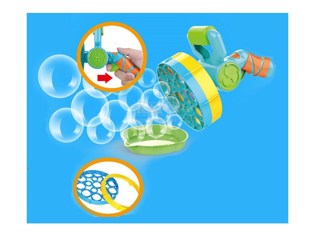 Užij si miliony bublinek vystřelujících z této senzační pistole. Ideální pro hru venku nebo v interiéru. Obsahuje bublifuk, misku a pistolku. Pistole funguje na 2 ks baterí typu AA, které nejsou součástí balení.Doplňkové parametry
