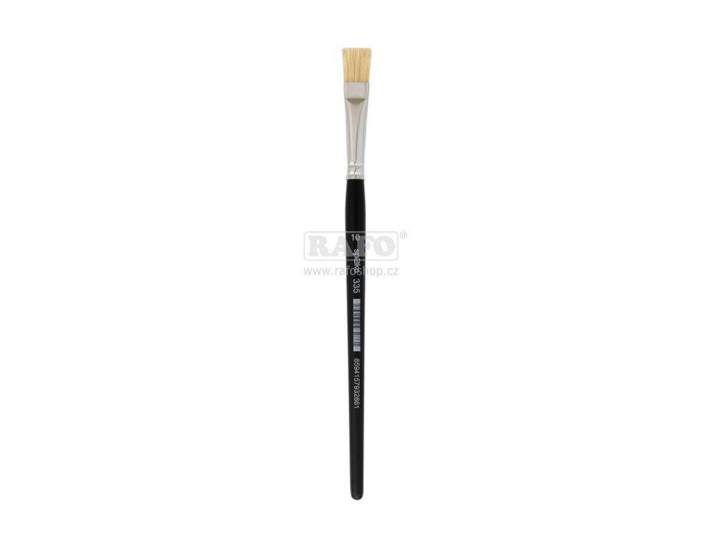 Kvalitní štětinový štětec plochý velikosti 10. Vhodný pro práci s hutnými barvami - tempera, akrylové, nanášení lepidel a speciálních laků. Dřevěná černá lakovaná násadka. Délka štětců tohoto typu 17 - 20 cm.Doplňkové parametry