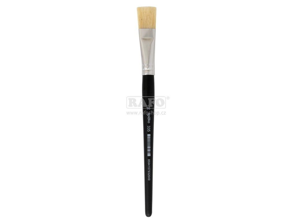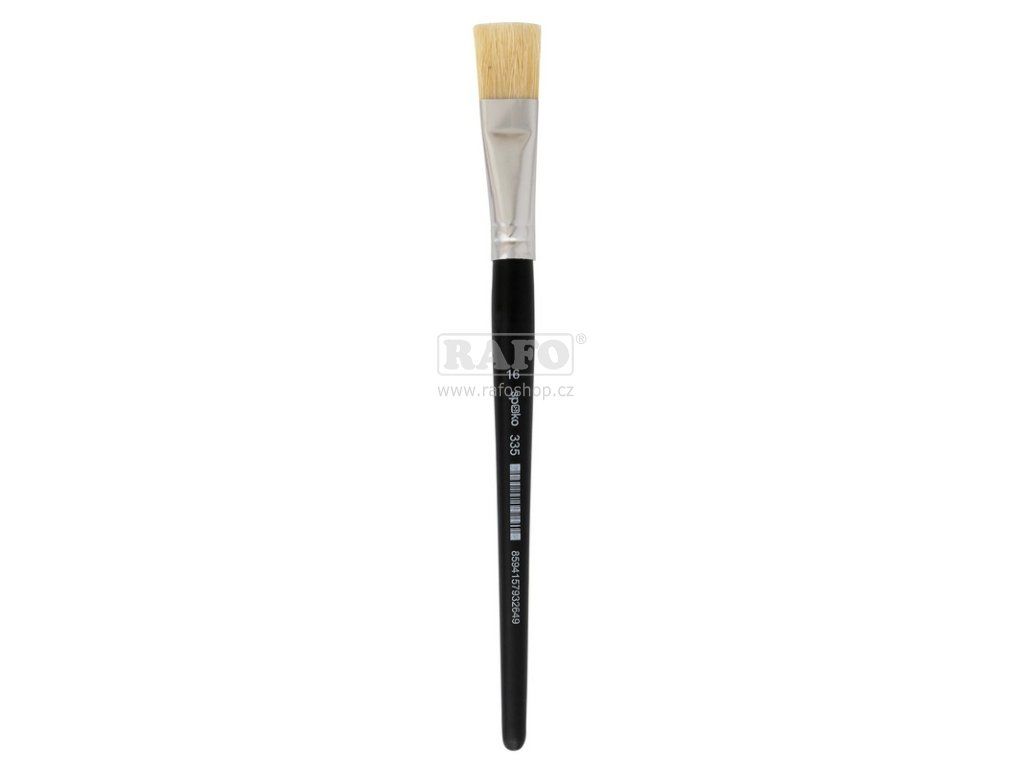 Kvalitní štětinový štětec plochý velikosti 16. Vhodný pro práci s hutnými barvami - tempera, akrylové, nanášení lepidel a speciálních laků. Dřevěná černá lakovaná násadka. Délka štětců tohoto typu 17 - 20 cm.Doplňkové parametry
