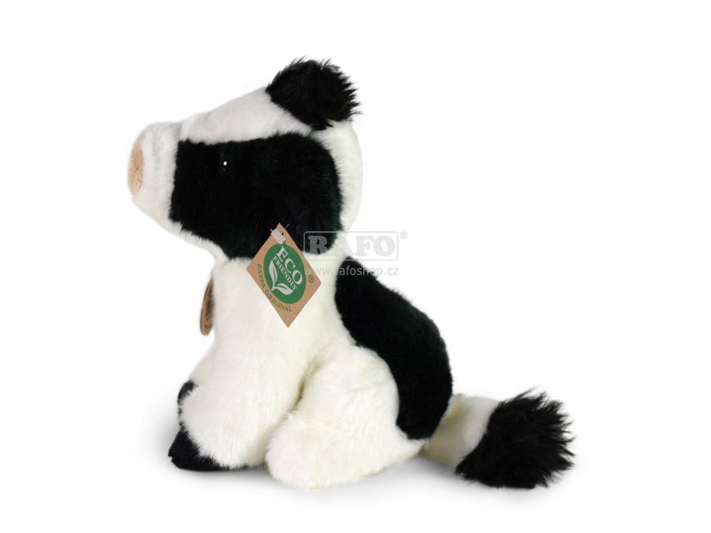 Plyšová kráva je ručně ušitá z vysoce kvalitní, jemné plyše, a díky tomu vypadá jako živá. Tato sedící kráva se pyšní velikostí 18 cm. Pro svou roztomilost se stává vítaným společníkem v jakékoliv chvíli. Je součástí exkluzivní kolekce plyšových hraček RAPPA. Rozhodli jsme se jít zelenou cestou co nejméně zatěžující životní prostředí - cestou ECO-FRIENDLY. Co to vlastně ECO-FRIENDLY znamená? Výplň plyšové hračky je vyrobena z recyklovaných PET lahví. Tento materiál je zcela bezpečný, na omak nerozeznatelný od standardní výplně a plně atestovaný pro bezpečnost i těch nejmenších.Doplňkové parametry