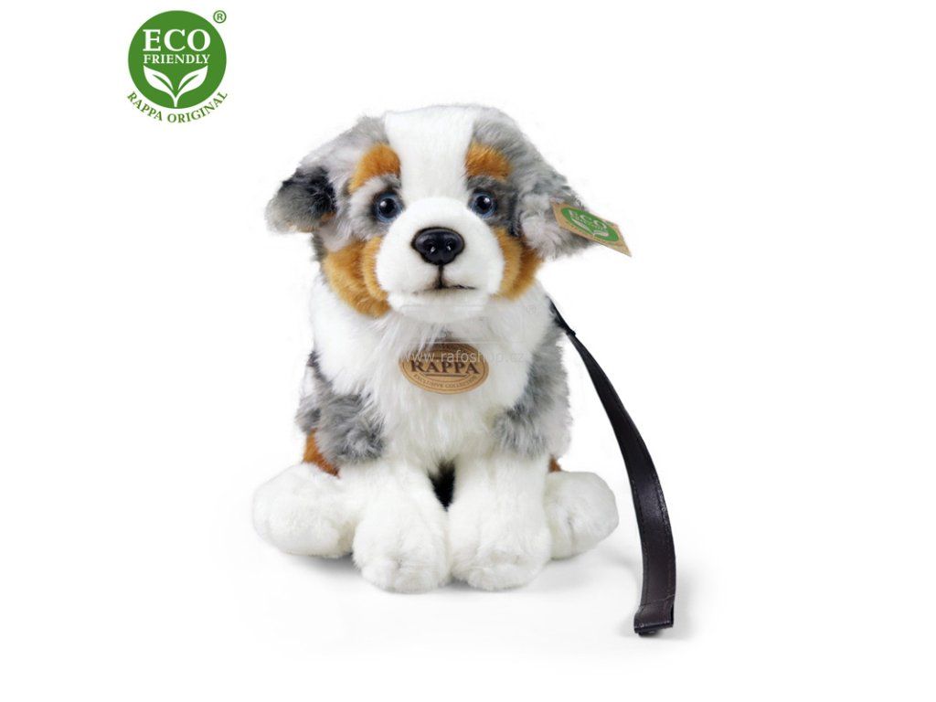 Plyšový Australský ovčák o velikosti 27 cm je ručně ušitý z vysoce kvalitní, jemné plyše, a díky tomu vypadá jako živý. Je vítaným společníkem nejen v každém dětském pokojíčku. Je součástí exkluzivní kolekce plyšových hraček RAPPA. Rozhodli jsme se jít zelenou cestou co nejméně zatěžující životní prostředí - cestou ECO-FRIENDLY. Co to vlastně ECO-FRIENDLY znamená? Výplň plyšové hračky je vyrobena z recyklovaných PET lahví. Tento materiál je zcela bezpečný, na omak nerozeznatelný od standardní výplně a plně atestovaný pro bezpečnost i těch nejmenších.Doplňkové parametry