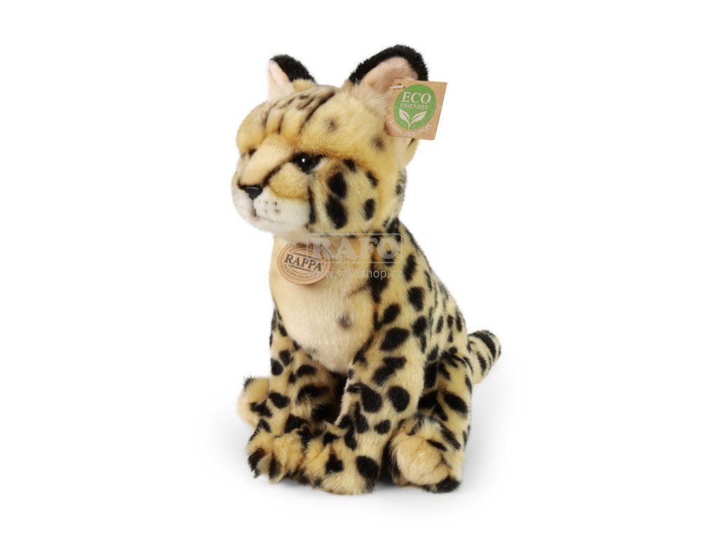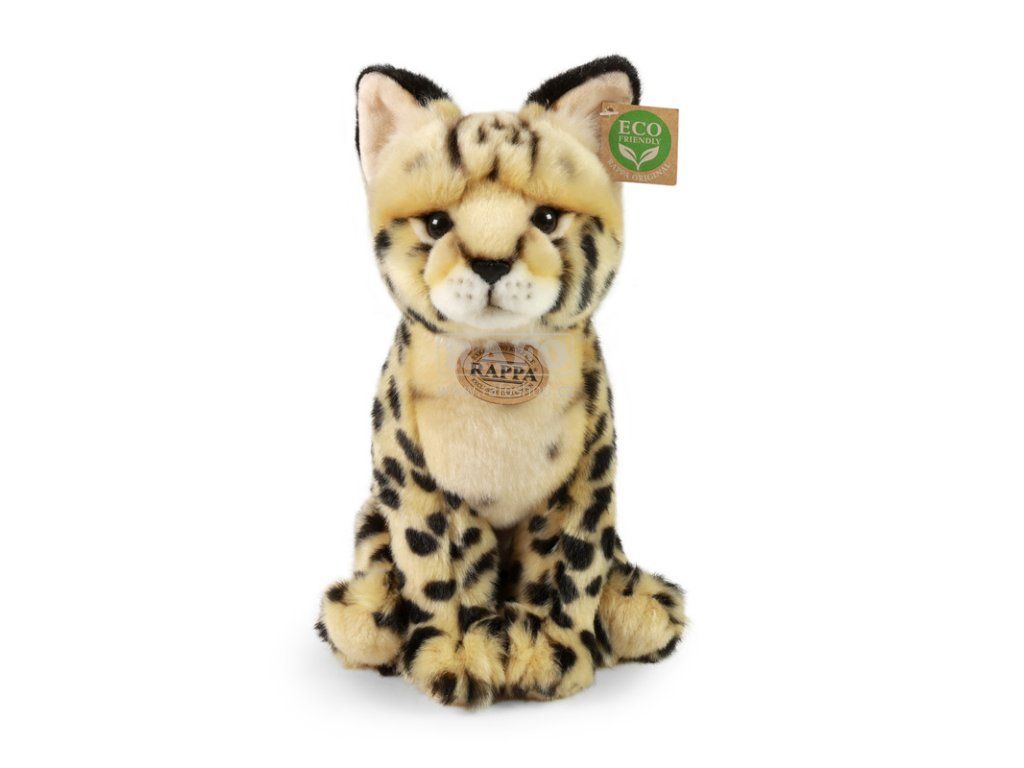 Plyšový serval o velikosti 30 cm je ručně ušitý z vysoce kvalitní, jemné plyše, a díky tomu vypadá jako živý. Je součástí exkluzivní kolekce plyšových hraček RAPPA. Tento plyšový kousek je ideálním dárkem pro všechny milovníky roztomilých plyšáků! Rozhodli jsme se jít zelenou cestou co nejméně zatěžující životní prostředí - cestou ECO-FRIENDLY. Co to vlastně ECO-FRIENDLY znamená? Výplň plyšové hračky je vyrobena z recyklovaných PET lahví. Tento materiál je zcela bezpečný, na omak nerozeznatelný od standardní výplně a plně atestovaný pro bezpečnost i těch nejmenších.Doplňkové parametry