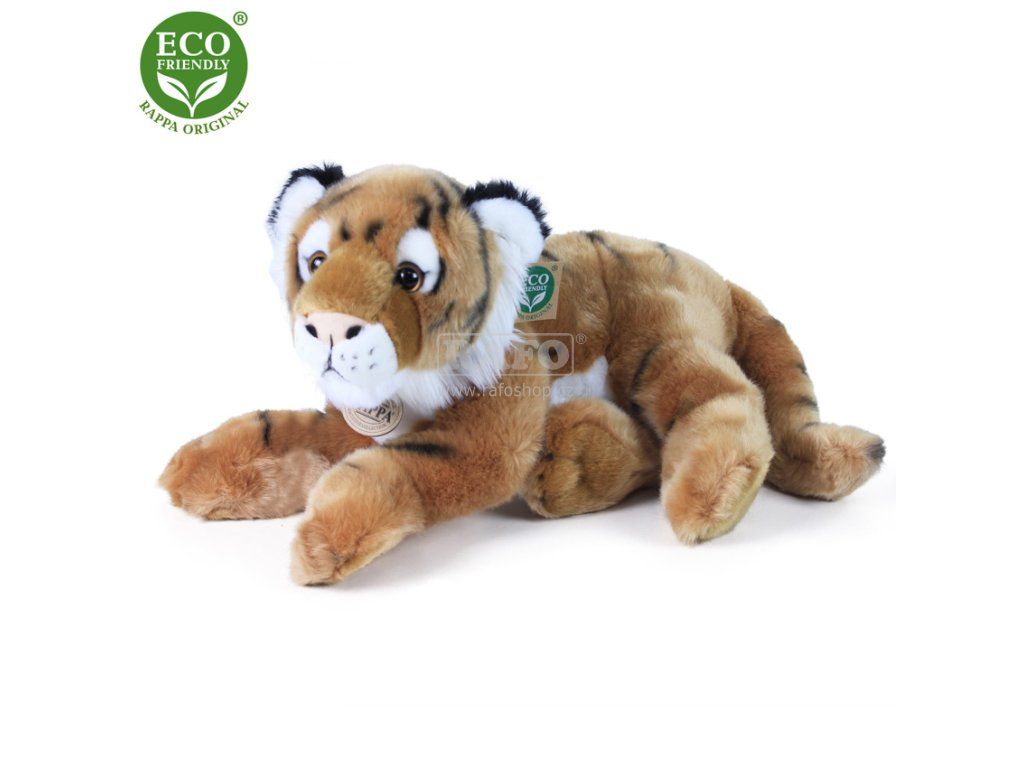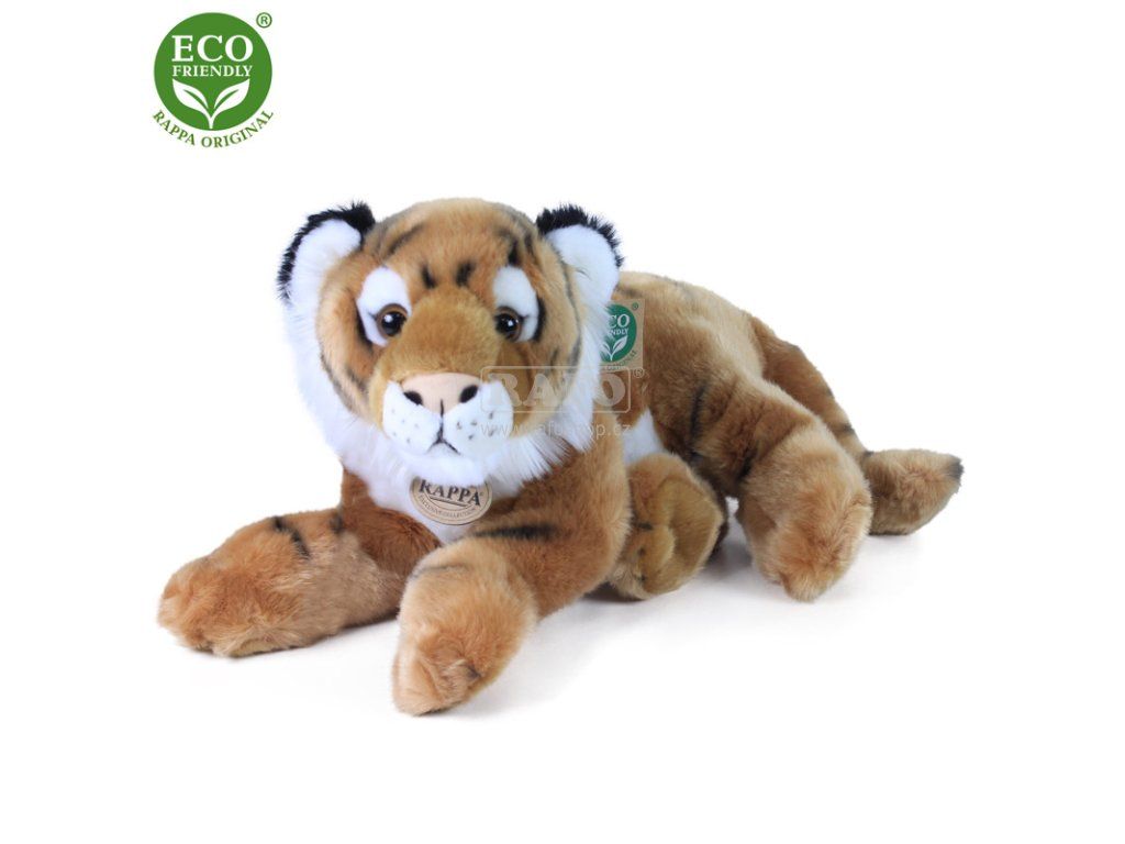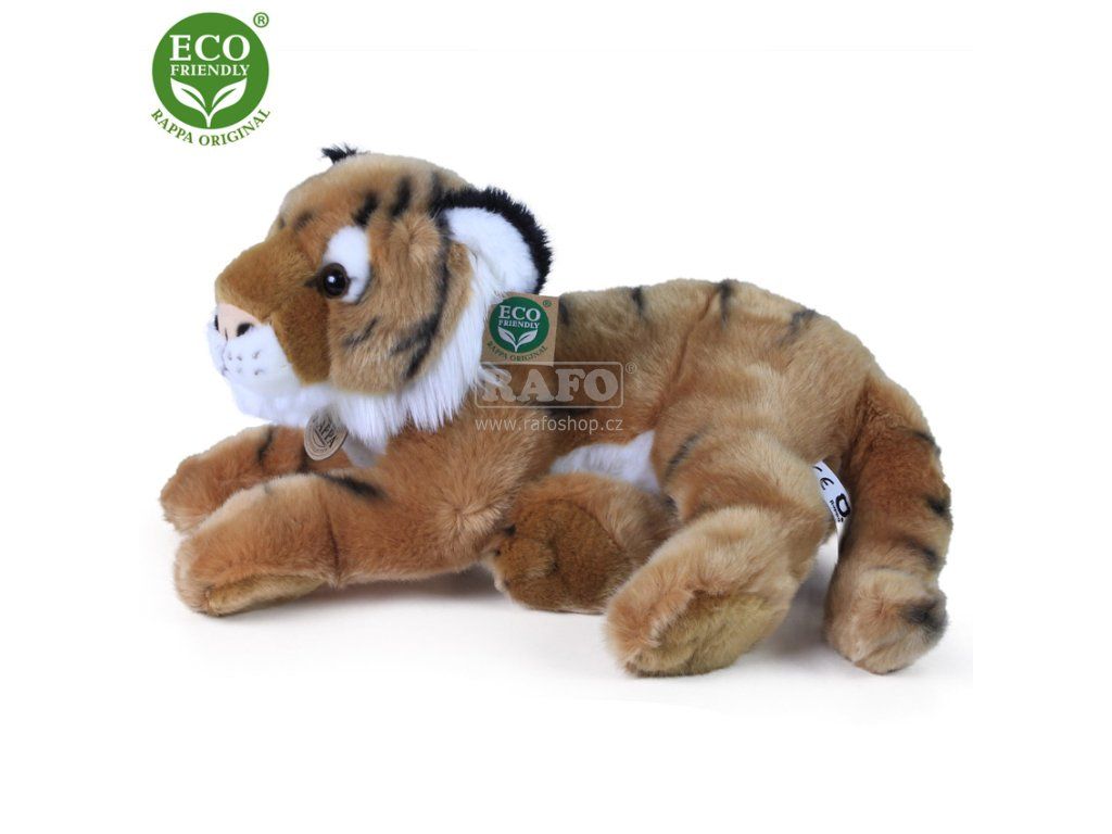 Plyšový tygr o velikosti 36 cm je vyroben z vysoce kvalitní, jemné plyše, a díky tomu vypadá jako živý. Je vítaným společníkem nejen v každém dětském pokojíčku. Je součástí exkluzivní kolekce plyšových hraček RAPPA. Rozhodli jsme se jít zelenou cestou co nejméně zatěžující životní prostředí - cestou ECO-FRIENDLY. Co to vlastně ECO-FRIENDLY znamená? Výplň plyšové hračky je vyrobena z recyklovaných PET lahví. Tento materiál je zcela bezpečný, na omak nerozeznatelný od standardní výplně a plně atestovaný pro bezpečnost i těch nejmenších.Doplňkové parametry
