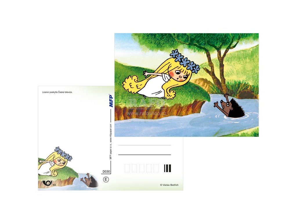 Pohled s dětským motivem večerníčky ČT. Najdete zde postavičky z pohádek Vila Amálka, Káťa a Škubánek, Králíci z klobouku, Maxipes Fík. Pohlednice jsou bez textu na zadní straně. Rozměr: 105 x 148 mm (Š x V x H) Vyrobeno v EU. Dodáváme v mixu dle skladové zásoby.Doplňkové parametry