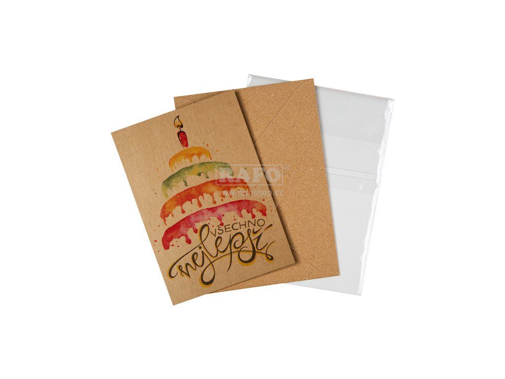 Přání BeBechy A6, kraft - Všechno nejlepší