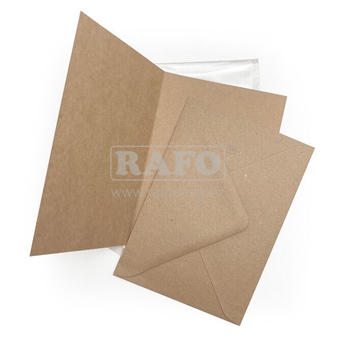 Obálka KRAFT 70 x 100 mm + přání vánoční stromek, 5 + 5 ks