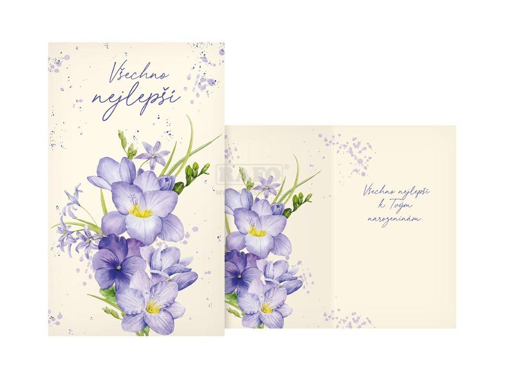 Srdečné přání k narozeninám s textem. Potěšte oslavence a spolu s dárkem mu věnujte originální a krásné přáníčko, které mu bude připomínat tuto radostnou událost. Text na přední straně přání: Všechno nejlepší Text uvnitř přání: Všechno nejlepší k Tvým narozeninám. Papír: pohlednicový karton 240 g, Rozměr: 114 x 190 mm + bílá obálkaDoplňkové parametry