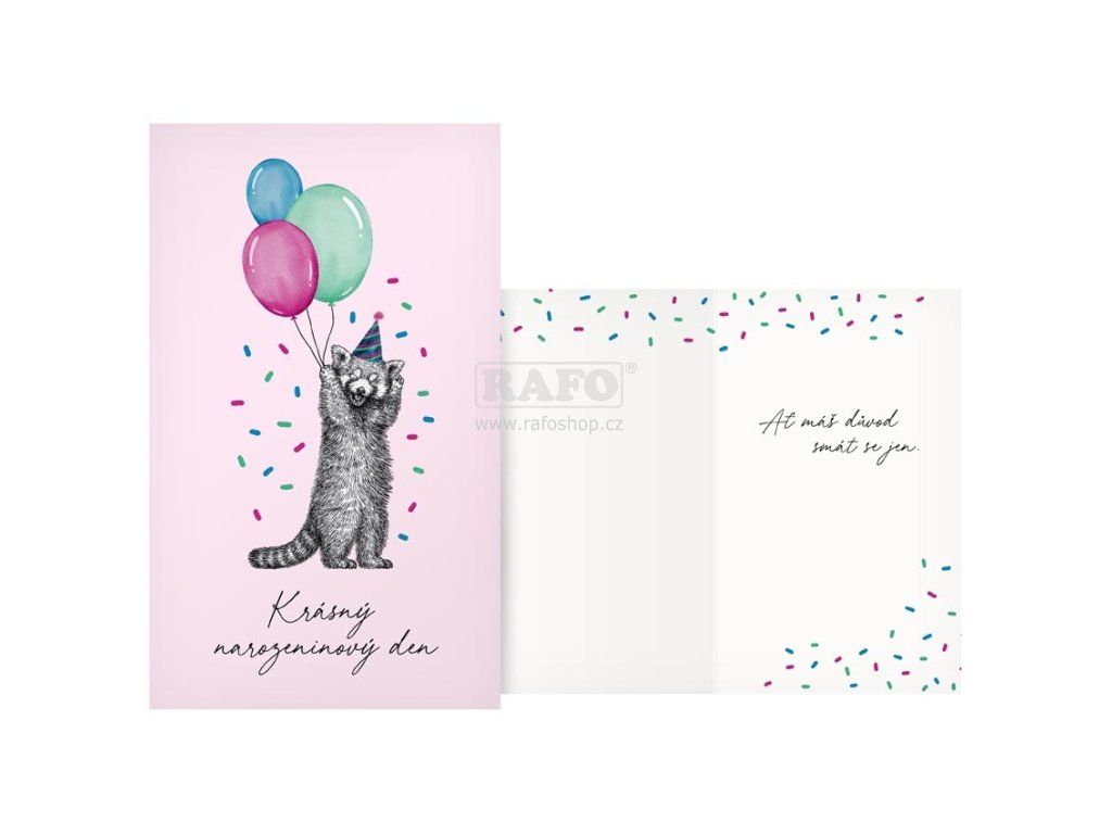 Přání srdečné k narozeninám. Přání je s motivem medvídka mývala a narozeninových balonků. Oslavy narozenin patří k výjimečným a příjemným okamžikům v životě. Potěšte oslavence a spolu s dárkem mu věnujte originální a krásné přáníčko, které mu bude připomínat tuto radostnou událost. • Text na přední straně přání: Krásný narozeninový den • Text uvnitř přání: Ať máš důvod smát se jen. • Papír: pohlednicový karton 240 g • Rozměr: 114 x 190 mm • bílá obálkaDoplňkové parametry