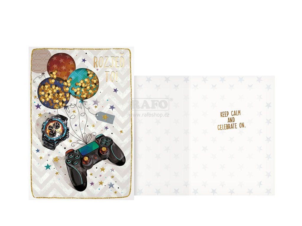 Srdečné přání k narozeninám. Udělejte oslavenci radost originálním narozeninovým přáním, které mu bude připomínat tuto radostnou událost. • Text na přání: Rozjed' TO! • Text uvnitř přání: KEEPM CALM AND CELEBRATE ON. • Papír: pohlednicový karton • Přání je baleno v sáčku, součástí balení je i dopisní obálka. • Rozměr: 115 mm x 170 mm x 1 mmDoplňkové parametry
