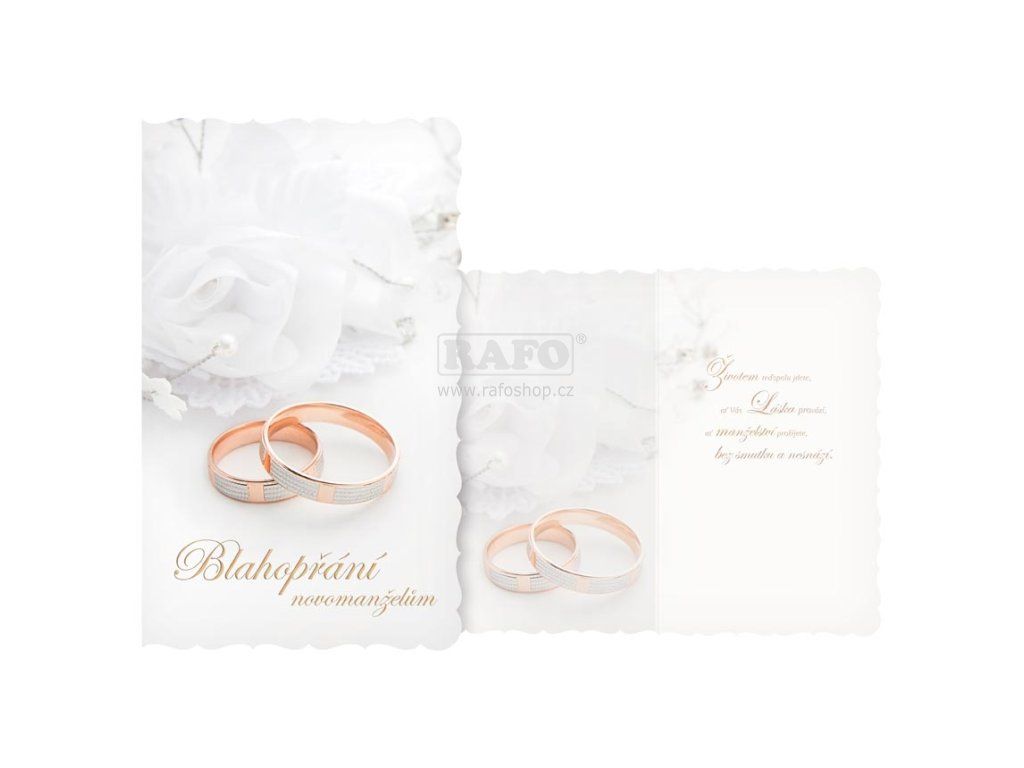 Přání svatební - Svatba je krásná, příjemná a mimořádná událost a je začátkem nové etapy života. Mezi svatební dary by tedy nemělo chybět i krásné svatební přání, které udělá určitě velkou radost novomanželům. Rozměr: 125mm x 200mm x 2mm (Š x V x H)Doplňkové parametry
