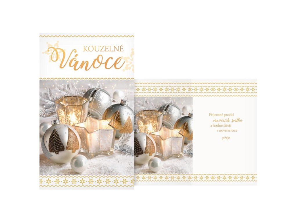 Přání Vánoční malé. Přání je s motivem svíček a vánočních ozdob. Nezapomeňte poslat krásné vánoční přání Vašim známým. Určitě je potěší to, že jste si na ně vzpomněli. Rozměr: 94mm x 155mm x 1mm (Š x V x H)Doplňkové parametry