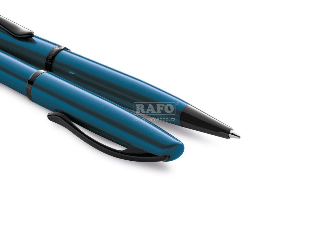Charakteristické zakřivené linie, díky nimž je pero lehké a živé. Perleťově lakovaný horní a spodní válec dokonale ladí tón v tónu s zbarveným hrotem, prstenem a klipem. Typická spona ve tvaru zobáku. Náplň modrá - M.Doplňkové parametry