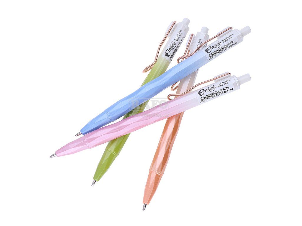 Trendy plastové kuličkové pero v pastelových barvách s kovovým klipem a perleťovým povrchem.Doplňkové parametry