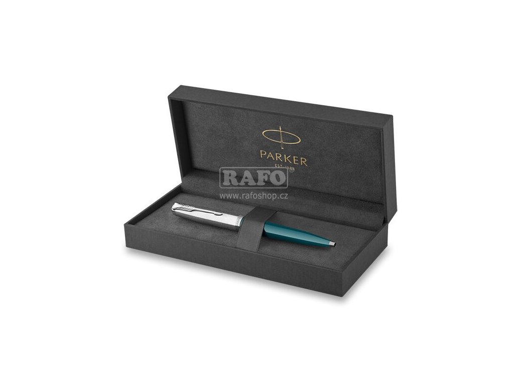 Kuličková tužka Parker 51 v barvě Teal Blue (modrozelená) je vyrobena z ušlechtilé pryskyřice. K vysunutí náplně slouží otočný mechanismus. Tělo z ušlechtilé, vínově červené pryskyřice a víčko z nerezové oceli s korunkou pokovenou palladiem. V kombinaci s doplňky pokovenými palladiem. Kuličková tužka: otočný mechanismus dodáváno s černou náplní Stejně jako v roce 1941, kdy byl Parker 51 poprvé uveden, i dnes se jedná o průlomový a v mnoha směrech originální psací nástroj. Inspirovaný perem kdysi označovaným jako nejžádanější na světě, si uchoval aerodynamický tvar i ikonický překrytý hrot. Také volba barevných provedení navazuje na barvy, které Parker používal v minulosti. Pero je vyrobeno z odolné ušlechtilé pryskyřice a pozornost je věnována každému detailu – víčko i další části pera zdobí prvky z drahých kovů, jednotlivé díly jsou sestavovány ručně. Současný Parker 51 je inspirovaný minulostí, ale stvořený pro budoucnost.Doplňkové parametry