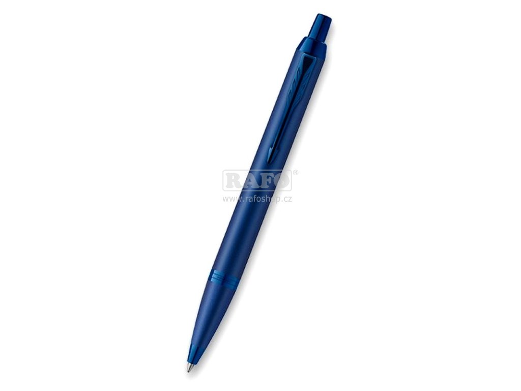 Kuličková tužka Parker IM Monochrome Blue má tělo pokryté modrým lakem, potažené pomocí techniky PVD odolnou matně modrou vrstvou. V kombinaci s doplňky potaženými pomocí techniky PVD odolnou leskle modrou vrstou. Monochromatický design, od zcela modrých lemů až po zcela modrý hrot, zobrazuje nesrovnatelnou eleganci. Kuličková tužka (kuličkové pero, propiska): stiskací mechanismus, dodáváno s modrou náplní. Dodáváno v elegantním dárkovém balení. V řadě IM Monochrome Parker opět využívá technologii PVD. Díky módnímu monochromatickému provedení a modernímu matnému designu je Parker IM Monochrome ideálním doplňkem pro mladou generaci. Je elegantní i vysoce profesionální a spolehlivý.Doplňkové parametry