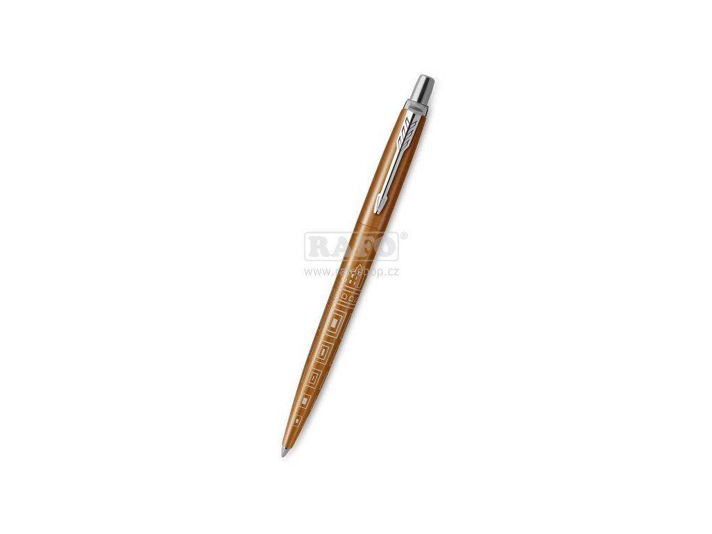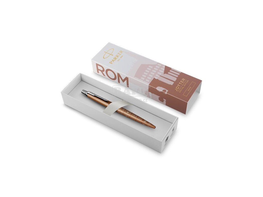 Speciální edice Parker Jotter Global Icons je edice, která je společností Parker vydána na počest nejvíce ohromujících měst planety. Kuličkové pero Parker Jotter SE Rome Bronze CT s originálním designem má nerezové tělo pokryté bronzovým lakem. Laserem vyvedený vzor v designu města Řím a dekorem, který je pro město typický. V kombinaci s doplňky z nerezové oceli. Kuličkové pero (propiska): stiskací mechanismus dodáváno s modrou nebo černou náplní dle dostupnposti skladu Dodáváno v elegantním dárkovém balení ve vizuálu města Řím.Doplňkové parametry