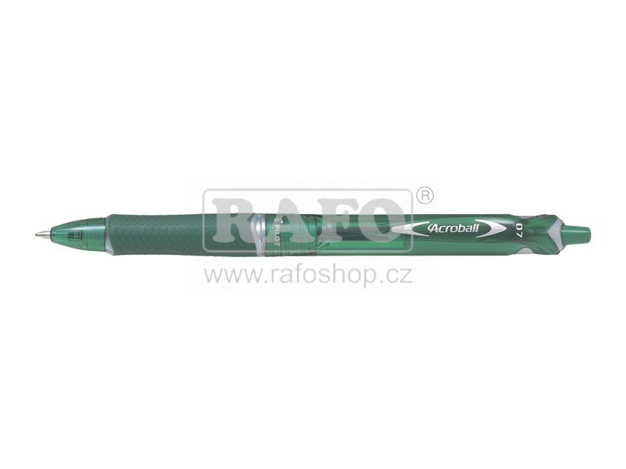 Stiskací kuličkové pero Pilot Acroball s ergonomickým tvarem úchopu Vás překvapí především jedinečnou hladkostí psaní. Výrobek je v provedení Pilot BeGreen - výrobky jsou v maximálním možné míře vyráběny z recyklovaných materiálů. Výrobek využívá náplň nové generace, která je založena na olejové bázi. Je voděodolná a rychleschnoucí a zajišťuje plynulé psaní a jasné intenzivní barvy. Pero má výměnnou náplň.