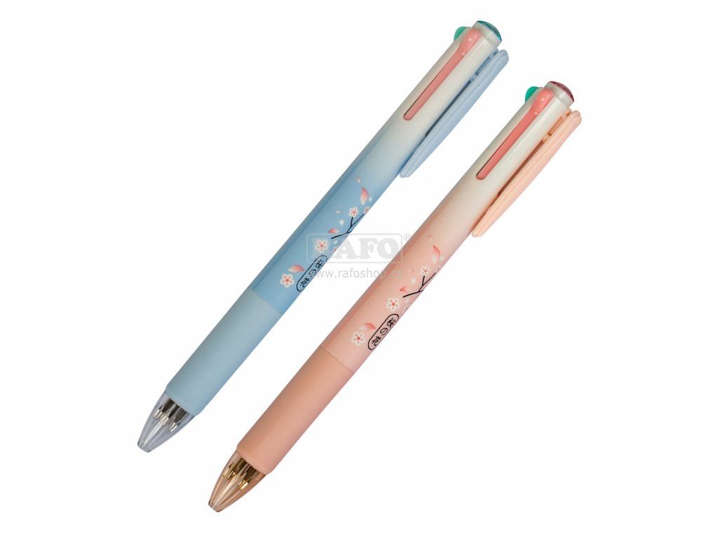 Plastové kuličkové pero, stiskací mechanismus, čtyřkombinace červená-modrá-zelená-černá, šíře stopy 0,5 mm, dodáváno v mixu 2 barev - bude dodáno dle aktuální skladové dostupnosti. Ideální pro školní psaní a zvýrazňování.Doplňkové parametry