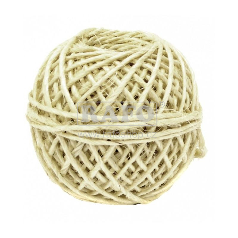 Sisálový motouz - přírodní 100 g. Sisalový motouz je čistě přírodní provázek. Jeho využití je poměrně široké. Používají se jako dekorace v uměleckých školách a dílnách, v zemědělství se používá v vyvazování lnu, vázání slámy. V domácnostech jej lze použít k vázání balíků nebo dárků. Kromě dekorativního vzhledu vynikají také vysokou pevností.