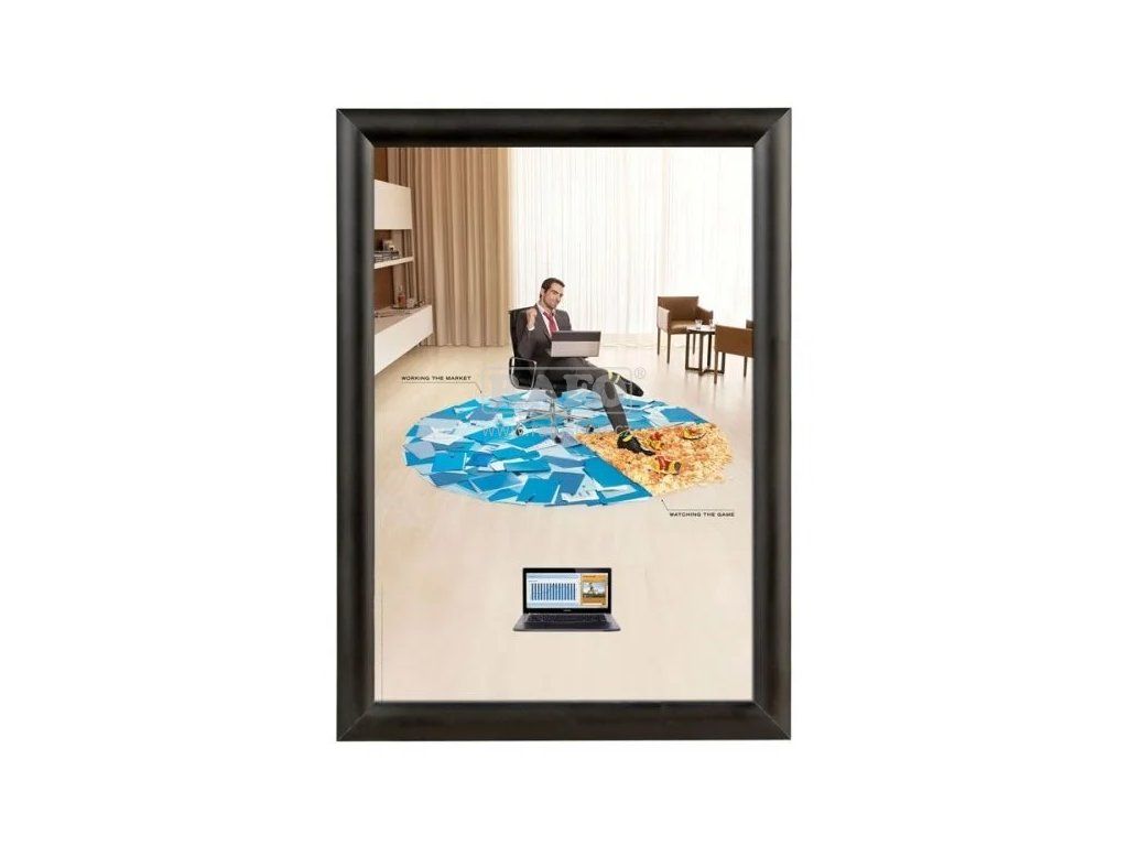 Elegantní kliprám z řady Blackline s černým matným rámem v profilu 25 mm a ostrými rohy. • Atraktivní černá eloxovaná barva hliníkového profilu • Princip fungování „Click Clack“ zaklapnutí • Snadná montáž, snadné přenání • Lze namontovat jak na šířku tak na výšku. • Zkosené rohy. • Antireflexní krycí fólieDoplňkové parametry