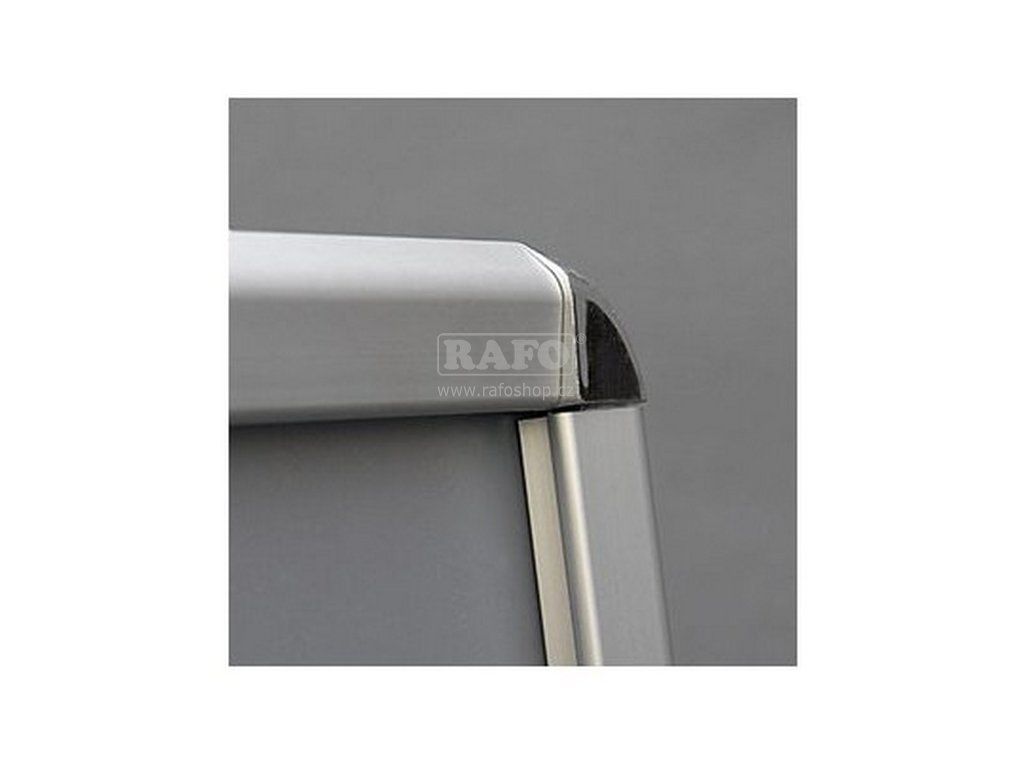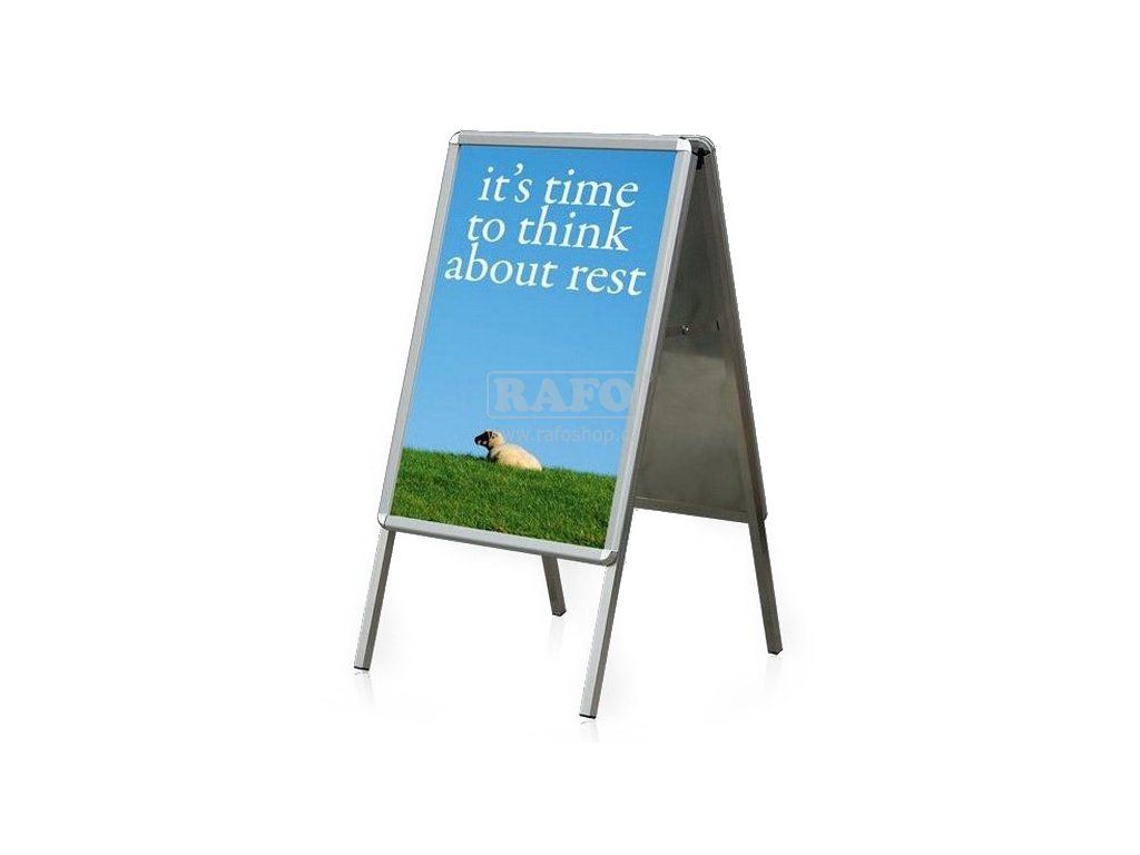 Reklamní stojan "áčko" - plakátová tabule A. Hliníkový rám profilu 32 mm s kulatými rohy a rychloupínacím systémem (klip rám). Ideální pro všechny velikosti plakátů, eloxovaný hliník. Průhledná krycí antireflexní fólie s ABS povrchem. Formát A0 - 841 x 1189mm. Hmotnost: 17 kg. Tady si můžete objednat tisk plakátu do reklamního áčka.Doplňkové parametry