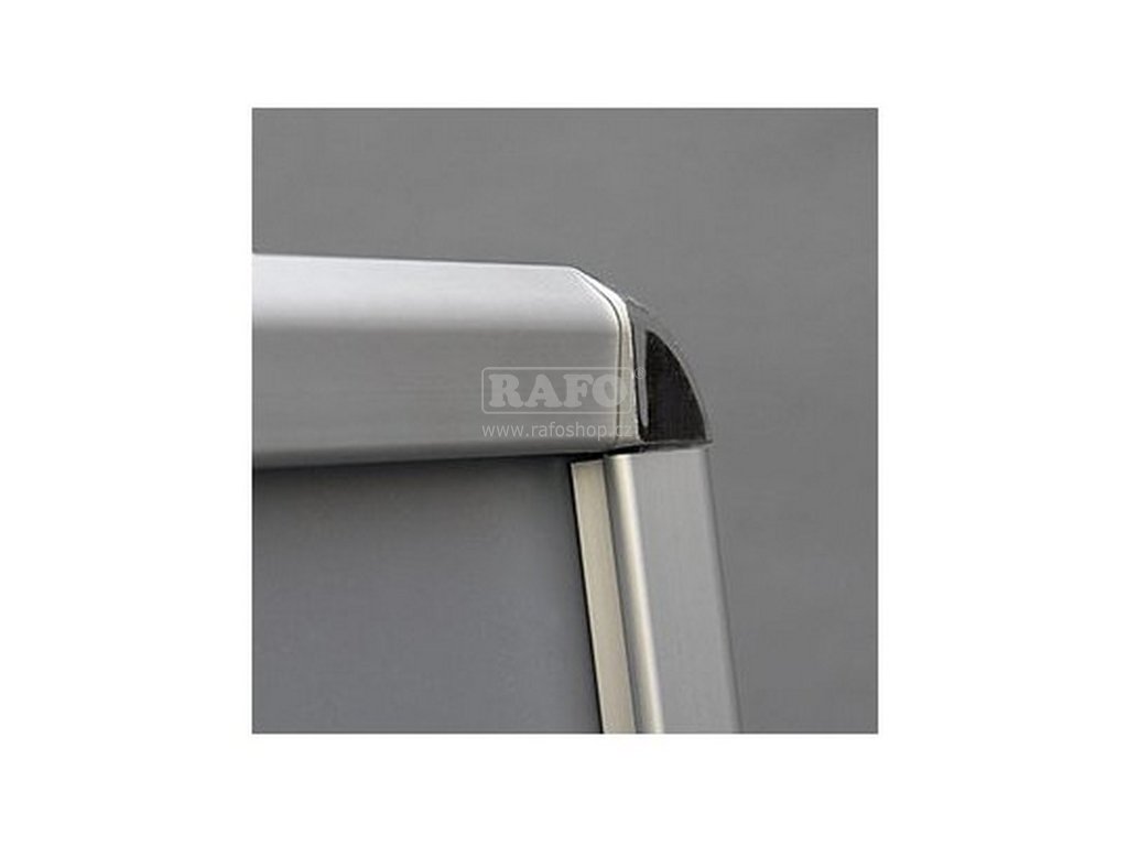 Reklamní stojan "áčko" - plakátová tabule A. Hliníkový rám profilu 32 mm s kulatými rohy a rychloupínacím systémem (klip rám). Ideální pro všechny velikosti plakátů, eloxovaný hliník. Průhledná krycí antireflexní fólie s ABS povrchem. Formát A2 - 420 x 594mm. Hmotnost: 6,5 kg. Tady si můžete objednat tisk plakátu do reklamního áčka.Doplňkové parametry