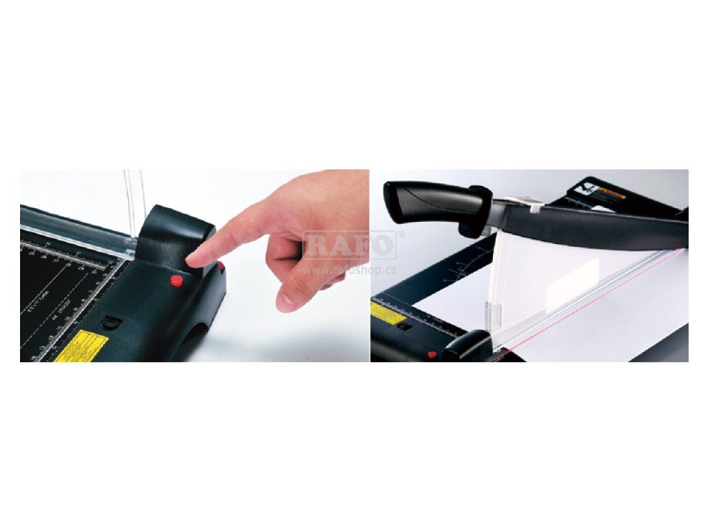 Páková řezačka s naznačením místa řezu laserem. Délka řezu 455 mm (A3 formát). Vhodná pro domácí kancelář nebo příležitostné použití v kanceláři. Max. tloušťka řezu 8 listů 80g papíru, ruční přítlak. Rozměry kovové základové desky 460 x 175 mm. Plastový bezpečnostní kryt nože. Na desce jsou naznačeny formáty A3-A5. Laser třídy 2.Doplňkové parametry