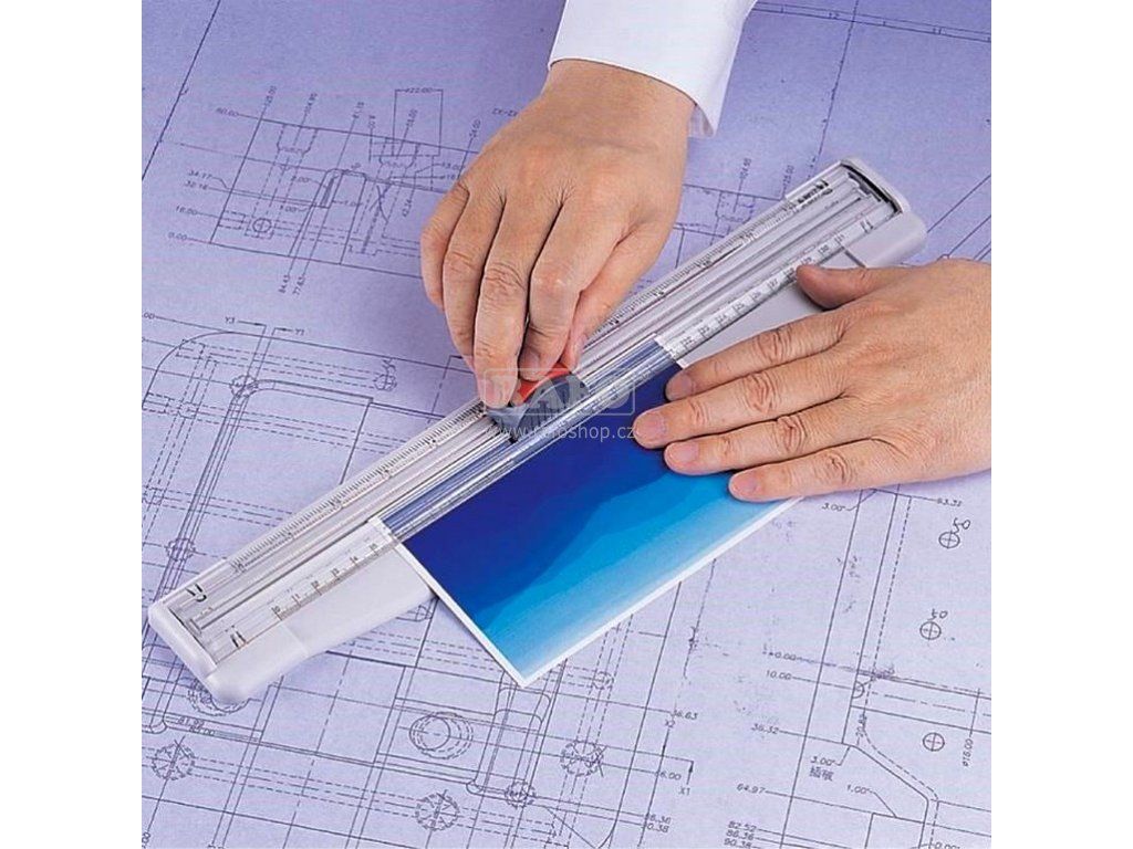Jednoduché řezací pravítko pro domácnosti a školy. Plastový podklad s průhledným přítlačným pravítkem, opatřeným řeznou hlavou, umožňuje odříznout až 5 listů papíru v délce 310 mm.Doplňkové parametry