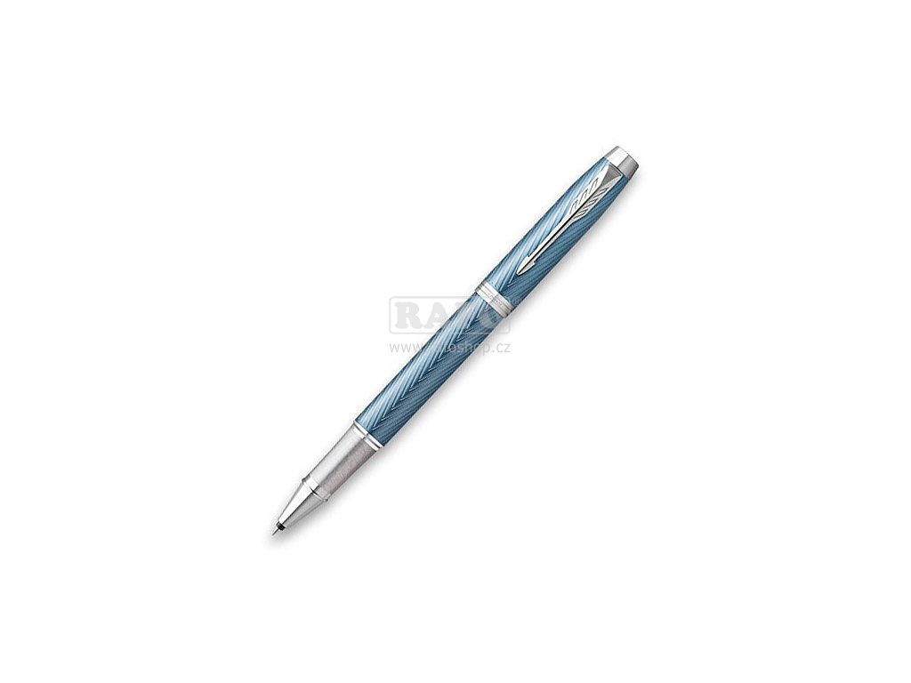 Parker IM je ideální partner s neomezenými možnostmi. Je elegantní i vysoce profesionální a spolehlivý. Nabízí odolný hrot z ušlechtilé nerezové oceli, širokou paletu provedení inspirovaných tradicí značky Parker, uživatelské pohodlí i maximální výkonnost. Roller Parker IM Premium Blue Grey CT má lakované mosazné tělo a víčko s reliéfní rytinou ikonického vzoru chevron, vyvedenou pomocí laseru. V kombinaci s doplňky pokovenými chromem. Roller: nasazovací víčko, standardní náplň Quink pro rollery - černá. Dodáváno v elegantním dárkovém balení.Doplňkové parametry
