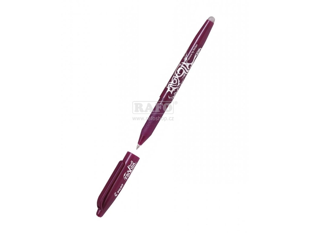 Kuličkové pero (roller) Pilot Frixion gumovatelné. Roller s unikátním inkoustem, který lze zneviditelnit třením - gumováním ( při -15°C se inkoust znovu objeví). Žádný odpad po tření. Neobsahuje chemikálie. Šířka hrotu 0,7 mm. Barva těla odpovídá barvě náplně.Doplňkové parametry