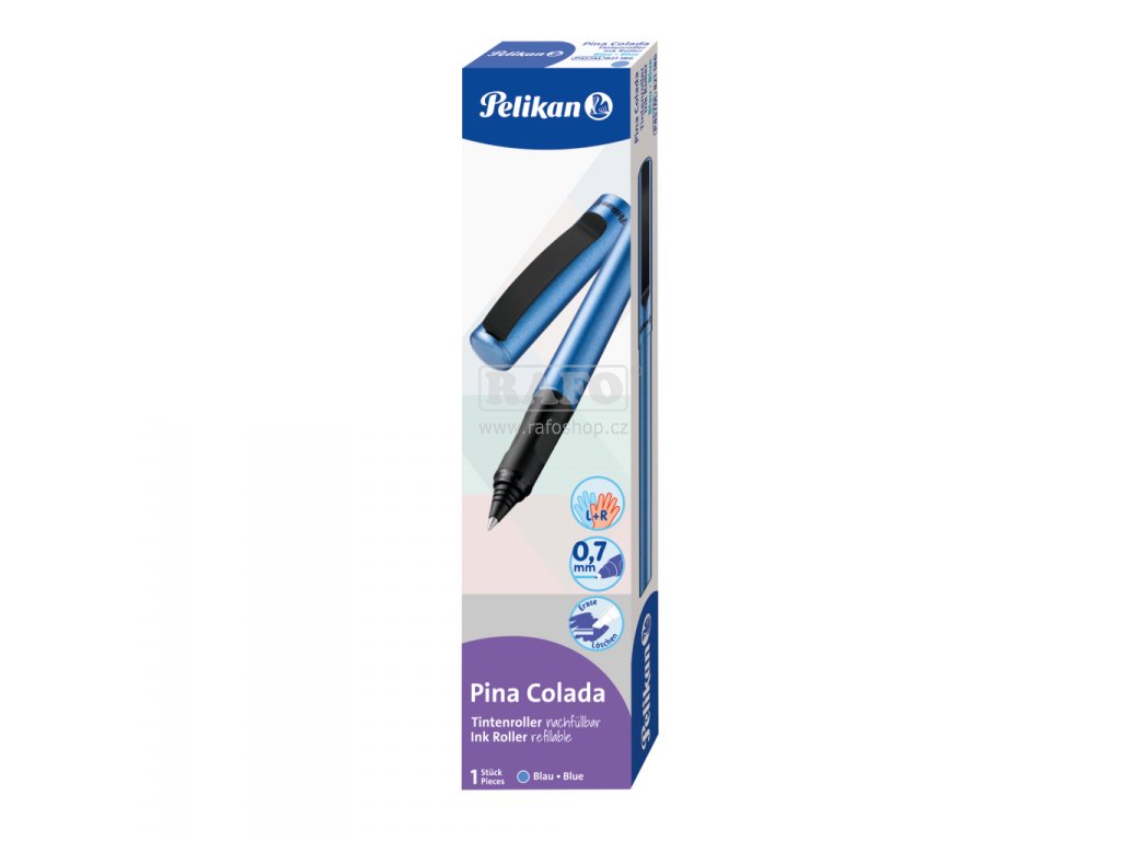 Inkoustový roller Pina Colada modrý metalický lak, vhodné pro praváky i leváky,nápln 1 inkoustová bombicka, inkoust je smazatelný, balené v krabicce.Doplňkové parametry