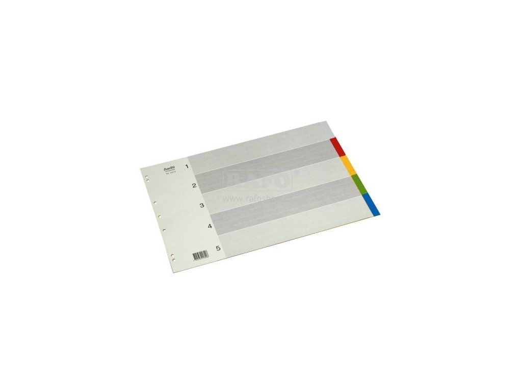 Barevné rozdělovníky A3, 5 barev, na šířku (435 x 300 mm). Rozdělovníky jsou vyrobené z polypropylenu s potištěnou titulní stranou a zesíleným závěsným okrajem Strong-Line.Doplňkové parametry