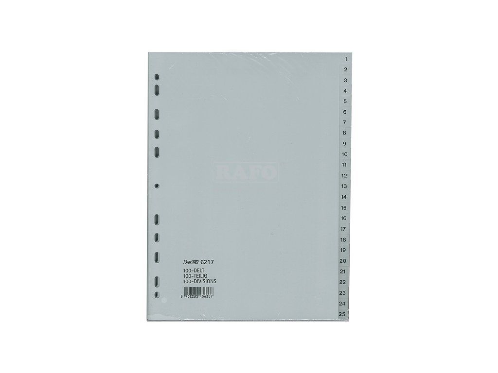 Číselný rozdružovač formátu A4, 1 - 100. Plastový, šedý.Doplňkové parametry