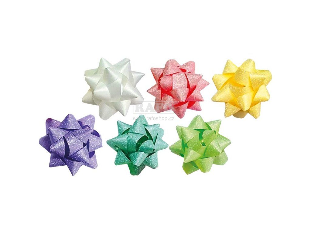 Rozetka s jemnými glitry v mixu barev. Ideální pro moderní ozdobení dárku. Rozetka má na spodní straně lepící pásku pomocí které ji připevníte na krabičku nebo jinak zabalený dárek. • Průměr: 100 mm • Šířka stuhy: 18 mm • Dodáváme v mixu barev dle skladové zásoby.Doplňkové parametry