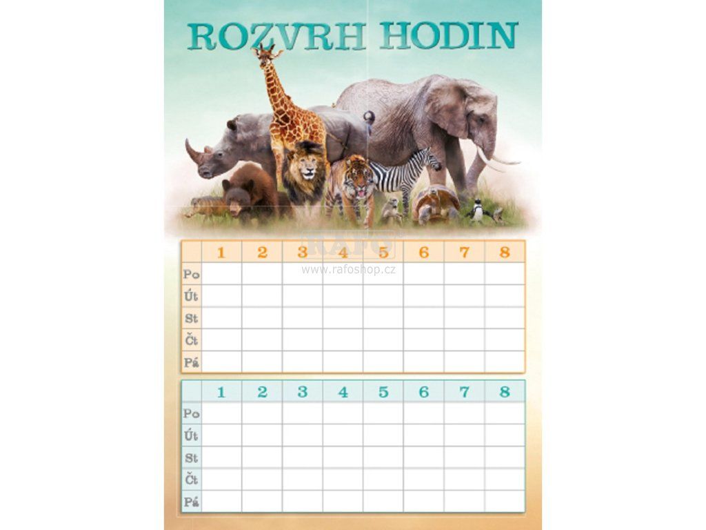 Perfektní rozvrh hodin, díky kterému ve škole už na nic nezapomenete! Velikost A5 (148 x 210 mm), 2x malý rozvrh, který se po vystříhnutí skvěle hodí do penálu!Doplňkové parametry