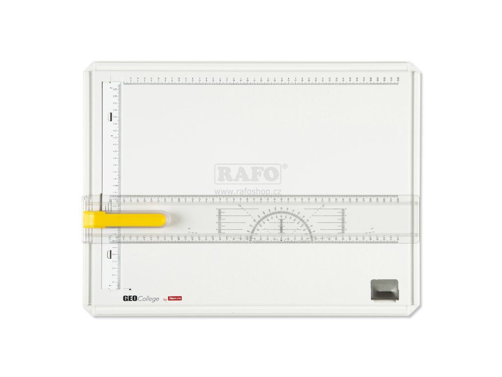 • základní verze rýsovacího prkna • snadná manipulace, vysoká stabilita • rozměr rýsovací desky A3 • vodorovné posuvné pravítko je vybaveno 2 stupnicemi, úhloměrem a vodítkem • posuvné pravítko má tlačítko pro nastavení do požadované polohy • magnetická upínací lišta s průhledovým okénkem pro kontrolu okraje papíru a přídavná svorka pro perfektní fixaci papíru • robustní tělo rýsovacího prkna je vyrobeno z nárazuvzdorného plastu • protiskluzové nožičky na spodní straně prkna zajišťují dokonalé uchycení na pracovní ploše • kvalita produktu „Made in Germany“ • rozměr: 375 x 30 x 497 mmDoplňkové parametry