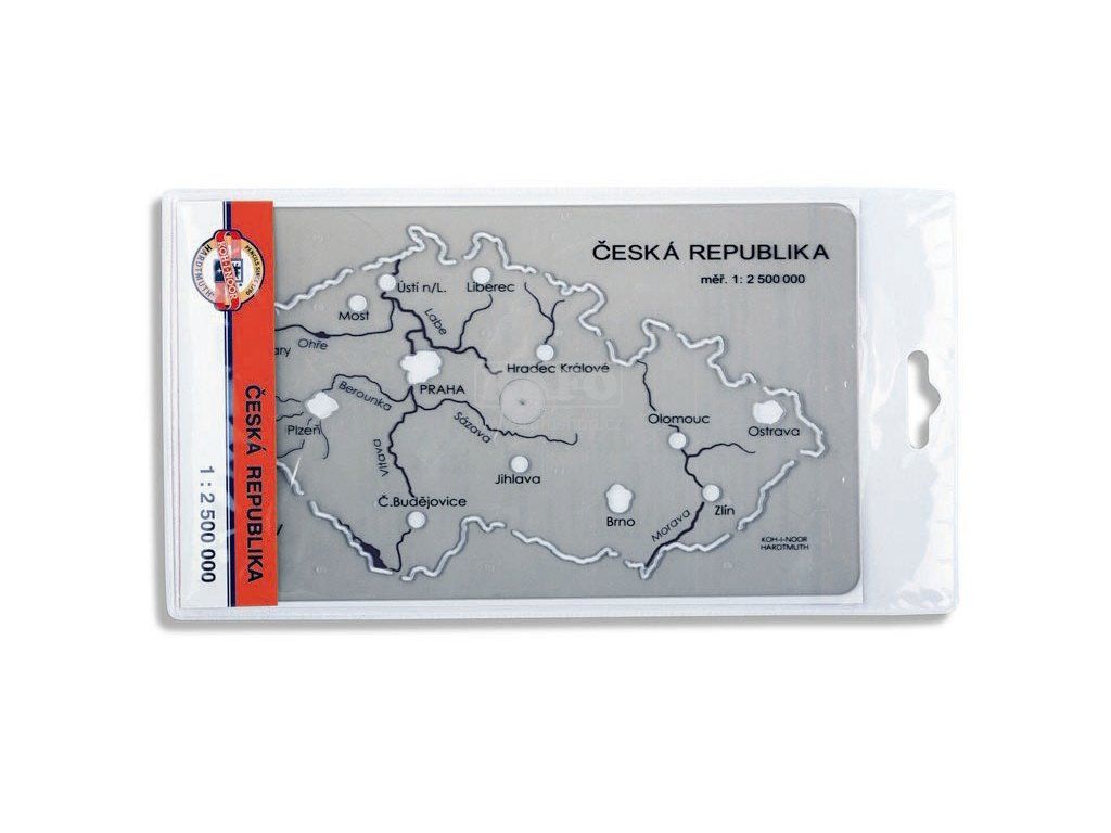 Školní šablona Česká republika s výřezem měst a označením řek od tradičního výrobce Kooh-i-noor. Měřítko 1:2 500 000. Kouřový plast.Doplňkové parametry