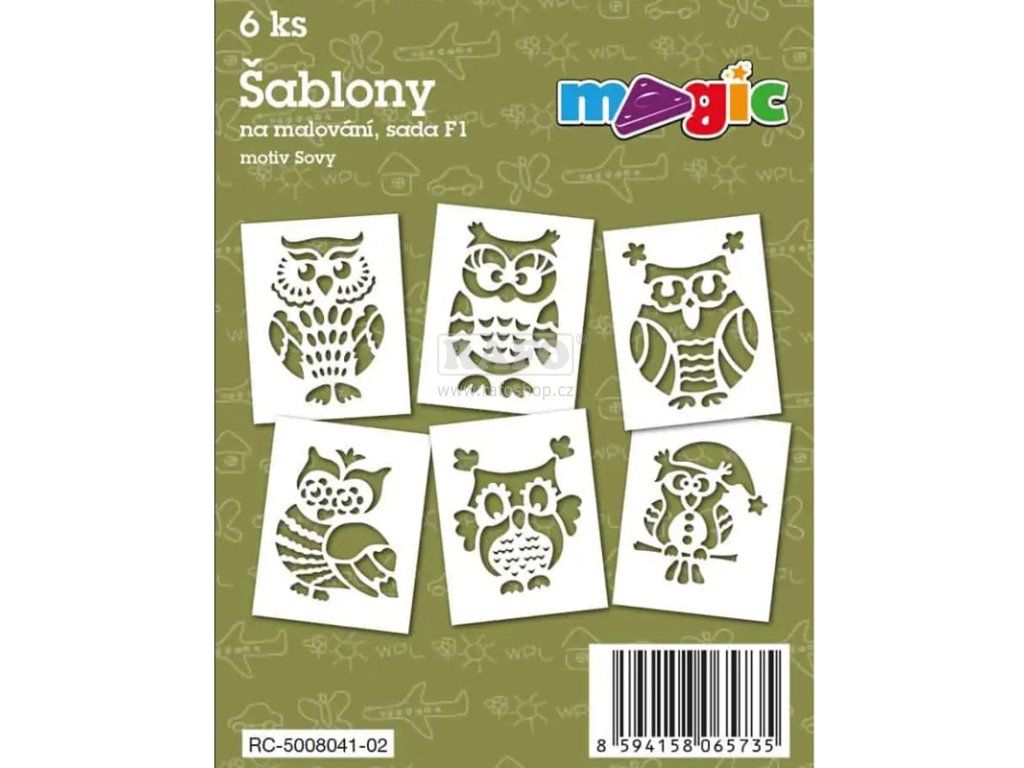 Sada 6 kusů papírových šablon na malování. Rozměr 11 x 14 cm, materiál bílý karton 220g, vhodné na všechny kreativní techniky. Doporučujeme: pro malování s magickými voskovkami (technika frotáž), i pro tupování s temperami, pro malování s foukacími fixami nebo techniku malování plastelínou. Nevhodné pro děti do 3 let, obsahuje malé dílky.Doplňkové parametry