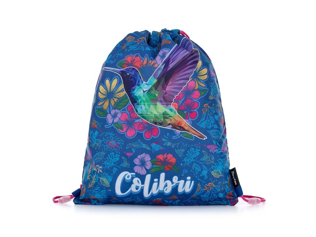 Sáček na cvičky - Karton P+P - Kolibřík - 3-88622. Sáček na přezůvky s motivem kolibříka. Uzavírání stažením šňůrek, možnost nosit i na zádech nebo připevnit ke školnímu batohu. Materiál - 100% polyester, Rozměry - 30 x 37 cm, Váha - 50 gDoplňkové parametry