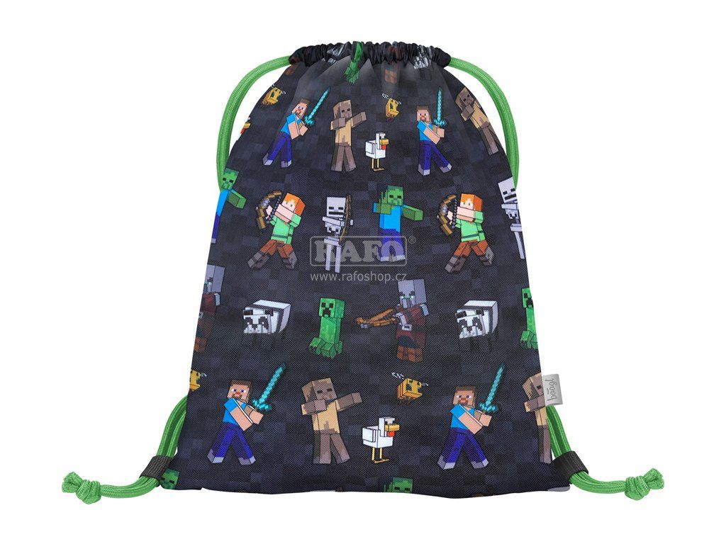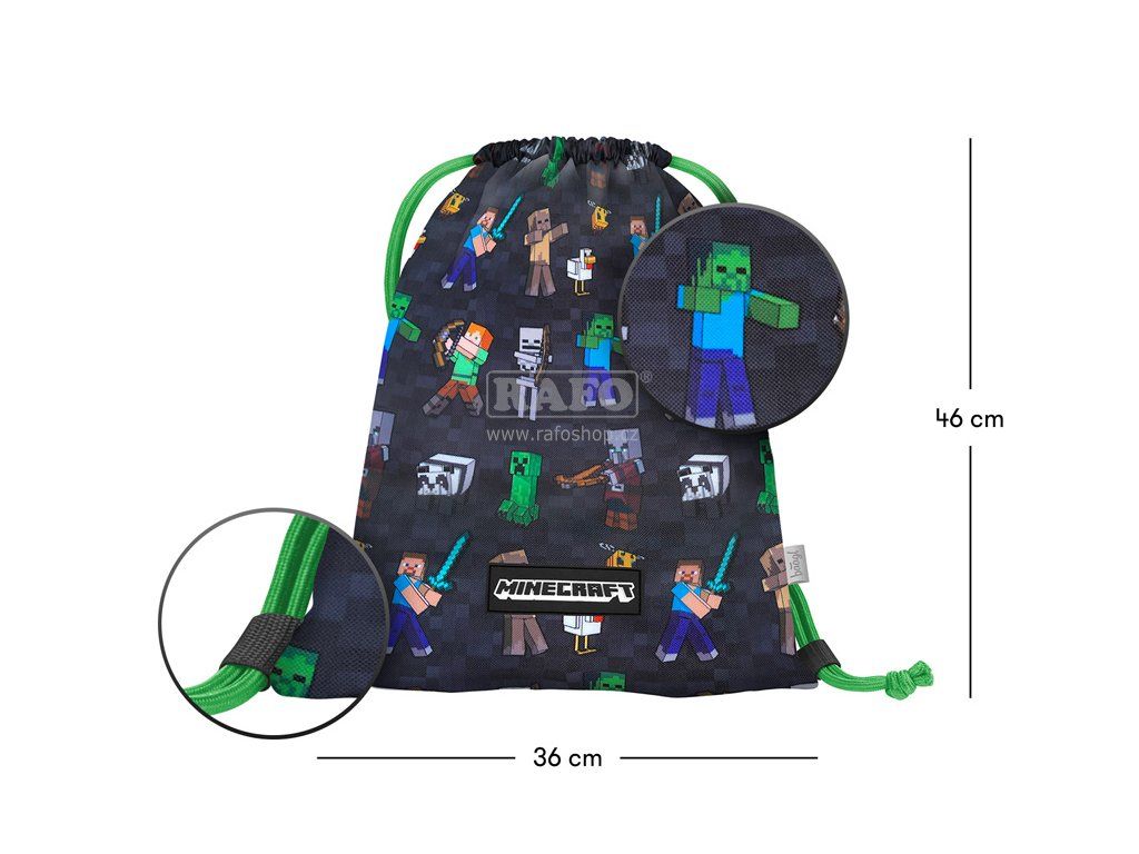 Praktický sáček na obuv nebo na tělocvik s motivem legendární počítačové hry Minecraft. • Sáček na obuv či jiné drobnosti pro vaše volnočasové aktivity. • Sáček je vybaven karabinkou díky, které ho lze připevnit na aktovku. • Sáček je vyroben z pevného omyvatelného materiálu. • Zdrhování pomocí pevných tkanic, které zároveň umožňují nošení na zádech. • Velikost: 36 x 46 cmDoplňkové parametry