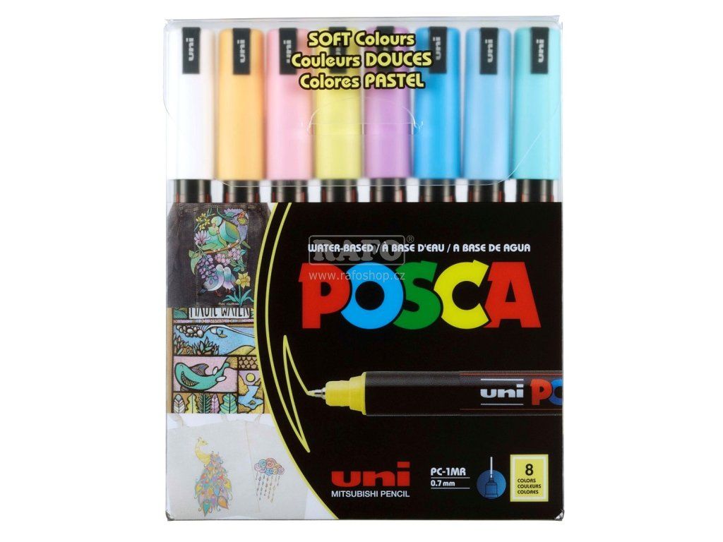 Sada popisovačů POSCA s tenkým hrotem, navržené pro profesionály a nadšené výtvarníky s požadavkem na psaní ultra-tenkou a konzistentní linkou v širokém výběru barev. Bezkonkurenční inkoust s vysokou krycí schopností je určen i na tmavé povrchy. Kvalita a sytost barev ohromí jak umělce tak i fandy, kteří budou nadšeni “magickým” efektem POSCA. Nabízí neomezené kreativní možnosti. Barvy jsou vrstvitelné, mísitelné, vodou ředitelné. Sada 8 pastelových barev, linka: 0,7 mm, sytá barva, vynikající hustota, vnitřní i venkovní použití. Po zaschnutí voděodolnéDoplňkové parametry