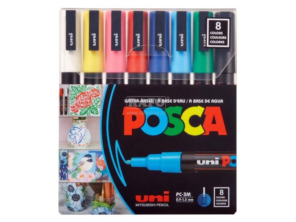 Sada akrylových fixů Posca PC-3M, hrot 0,9 - 1,3 mm, 8 barev