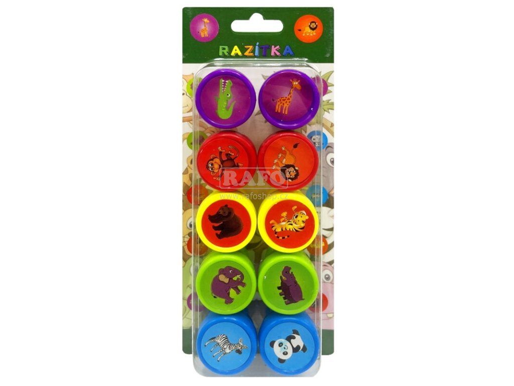 Razítková sada 10 ks Zvířátka. Dětská samonamáčecí razítka z plastu. Sada obsahuje celkem 10 ks razítek. Průměr razítka: cca 2,5 cm.Doplňkové parametry